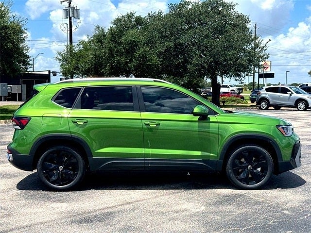 Recent Arrival! This 2025 Volkswagen Taos 1.5T SE in Green comes with the following features: 1.5L I4 Turbocharged DOHC 16V LEV3-SULEV30 174hp 8-Speed Automatic with Tiptronic FWD 4-Wheel Disc Brakes, 6 Speakers, ABS brakes, Active Blind Spot Monitor, Air Conditioning, Alloy wheels, AM/FM radio: SiriusXM with 360L, Auto High-beam Headlights, Automatic temperature control, Brake assist, Bumpers: body-color, CloudTex & Cloth Seating Surfaces, Compass, Delay-off headlights, Driver door bin, Driver vanity mirror, Dual front impact airbags, Dual front side impact airbags, Electronic Stability Control, Emergency communication system: VW Car-Net Safe & Secure 5-year, Exterior Parking Camera Rear, Front anti-roll bar, Front Bucket Seats, Front Center Armrest, Front dual zone A/C, Front reading lights, Front Strut Rear Torsion Beam Suspension, Front wheel independent suspension, Fully automatic headlights, Heated door mirrors, Heated Front Bucket Seats, Heated front seats, Heated steering wheel, Illuminated entry, Leather Shift Knob, Low tire pressure warning, Occupant sensing airbag, Outside temperature display, Overhead airbag, Overhead console, Panic alarm, Passenger door bin, Passenger vanity mirror, Power door mirrors, Power driver seat, Power steering, Power windows, Radio data system, Radio: MIB3 Composition Media AM/FM/HD, Rain sensing wipers, Rear anti-roll bar, Rear seat center armrest, Rear window defroster, Rear window wiper, Remote keyless entry, Security system, Speed control, Speed-sensing steering, Split folding rear seat, Spoiler, Steering wheel mounted audio controls, Tachometer, Telescoping steering wheel, Tilt steering wheel, Traction control, Trip computer, Variably intermittent wipers, and Wheels: 18 2-Tone Machined Alloy.