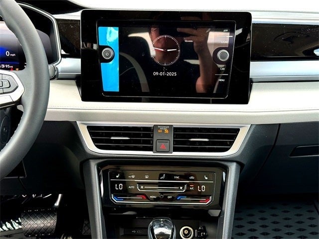 Recent Arrival! This 2025 Volkswagen Taos 1.5T SE in Black comes with the following features: 1.5L I4 Turbocharged DOHC 16V LEV3-SULEV30 174hp 8-Speed Automatic with Tiptronic FWD 4-Wheel Disc Brakes, 6 Speakers, ABS brakes, Active Blind Spot Monitor, Air Conditioning, Alloy wheels, AM/FM radio: SiriusXM with 360L, Auto High-beam Headlights, Automatic temperature control, Brake assist, Bumpers: body-color, CloudTex & Cloth Seating Surfaces, Compass, Delay-off headlights, Driver door bin, Driver vanity mirror, Dual front impact airbags, Dual front side impact airbags, Electronic Stability Control, Emergency communication system: VW Car-Net Safe & Secure 5-year, Exterior Parking Camera Rear, Front anti-roll bar, Front Bucket Seats, Front Center Armrest, Front dual zone A/C, Front reading lights, Front Strut Rear Torsion Beam Suspension, Front wheel independent suspension, Fully automatic headlights, Heated door mirrors, Heated Front Bucket Seats, Heated front seats, Heated steering wheel, Illuminated entry, Leather Shift Knob, Low tire pressure warning, Occupant sensing airbag, Outside temperature display, Overhead airbag, Overhead console, Panic alarm, Passenger door bin, Passenger vanity mirror, Power door mirrors, Power driver seat, Power steering, Power windows, Radio data system, Radio: MIB3 Composition Media AM/FM/HD, Rain sensing wipers, Rear anti-roll bar, Rear seat center armrest, Rear window defroster, Rear window wiper, Remote keyless entry, Security system, Speed control, Speed-sensing steering, Split folding rear seat, Spoiler, Steering wheel mounted audio controls, Tachometer, Telescoping steering wheel, Tilt steering wheel, Traction control, Trip computer, Variably intermittent wipers, and Wheels: 18 2-Tone Machined Alloy.