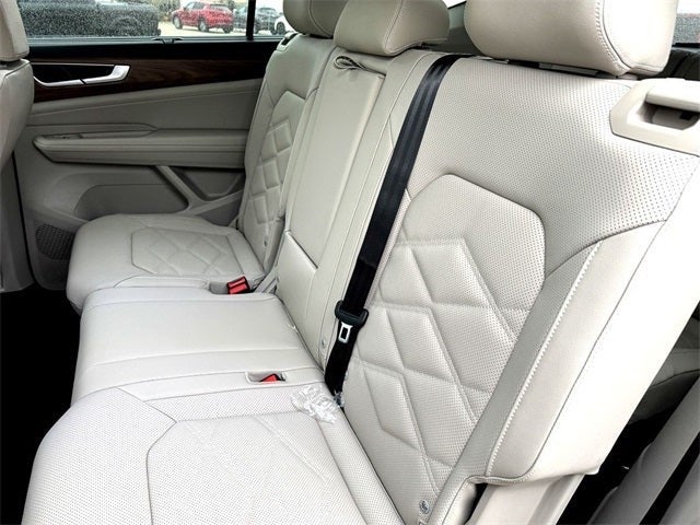 This 2026 Volkswagen Atlas 2.0T SE w/Technology in Green comes with the following features: 2.0L TSI 8-Speed Automatic with Tiptronic FWD 3rd row seats: split-bench, 4-Wheel Disc Brakes, 6 Speakers, ABS brakes, Air Conditioning, Alloy wheels, AM/FM radio: SiriusXM with 360L, Auto High-beam Headlights, Auto-dimming Rear-View mirror, Automatic temperature control, Brake assist, Bumpers: body-color, Compass, Delay-off headlights, Driver door bin, Driver vanity mirror, Dual front impact airbags, Dual front side impact airbags, Electronic Stability Control, Emergency communication system, Exterior Parking Camera Rear, Four wheel independent suspension, Four-wheel Independent Suspension, Front anti-roll bar, Front Bucket Seats, Front Center Armrest, Front dual zone A/C, Front fog lights, Front reading lights, Fully automatic headlights, Garage door transmitter: HomeLink Connect, Heated & Actively Ventilated Front Bucket Seats, Heated door mirrors, Heated front seats, Heated steering wheel, Illuminated entry, Low tire pressure warning, Occupant sensing airbag, Outside temperature display, Overhead airbag, Overhead console, Panic alarm, Passenger door bin, Passenger vanity mirror, Perforated V-Tex Leatherette Seating Surfaces, Power door mirrors, Power driver seat, Power Liftgate, Power steering, Power windows, Radio data system, Radio: MIB3 Composition Media, Rain sensing wipers, Rear air conditioning, Rear anti-roll bar, Rear reading lights, Rear seat center armrest, Rear window defroster, Rear window wiper, Remote keyless entry, Security system, Speed control, Speed-sensing steering, Split folding rear seat, Spoiler, Steering wheel mounted audio controls, Tachometer, Telescoping steering wheel, Tilt steering wheel, Traction control, Trip computer, Turn signal indicator mirrors, Variably intermittent wipers, Ventilated front seats, and Wheels: 20 2-Tone Machined Alloy.