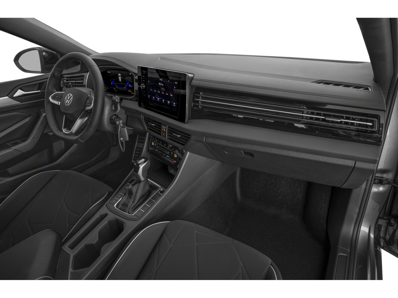 Recent Arrival! This 2026 Volkswagen Jetta 1.5T Sport in White comes with the following features: 1.5L I-4 DI DOHC Turbocharged 8-Speed Automatic with Tiptronic FWD Black Cloth Black Cloth, 4 Speakers, 4-Wheel Disc Brakes, ABS brakes, Active Blind Spot Monitor, Air Conditioning, Alloy wheels, Auto-dimming Rear-View mirror, Automatic temperature control, Brake assist, Bumpers: body-color, Cloth Seat Trim, Delay-off headlights, Driver door bin, Driver vanity mirror, Dual front impact airbags, Dual front side impact airbags, Electronic Stability Control, Emergency communication system: VW Car-Net Safe & Secure 5-year, Exterior Parking Camera Rear, Front anti-roll bar, Front Bucket Seats, Front Center Armrest, Front dual zone A/C, Front wheel independent suspension, Fully automatic headlights, Heated door mirrors, Heated Front Seats, Heated front seats, Illuminated entry, Leather Shift Knob, Leather steering wheel, Low tire pressure warning, Occupant sensing airbag, Outside temperature display, Overhead airbag, Overhead console, Panic alarm, Passenger door bin, Passenger vanity mirror, Power door mirrors, Power steering, Power windows, Radio data system, Radio: MIB3 Composition Color with 8 Touchscreen, Rain sensing wipers, Rear anti-roll bar, Rear reading lights, Rear seat center armrest, Rear window defroster, Remote keyless entry, Speed control, Speed-sensing steering, Split folding rear seat, Steering wheel mounted audio controls, Tachometer, Telescoping steering wheel, Tilt steering wheel, Traction control, Trip computer, Variably intermittent wipers, and Wheels: 17 2-Tone Machined Alloy.