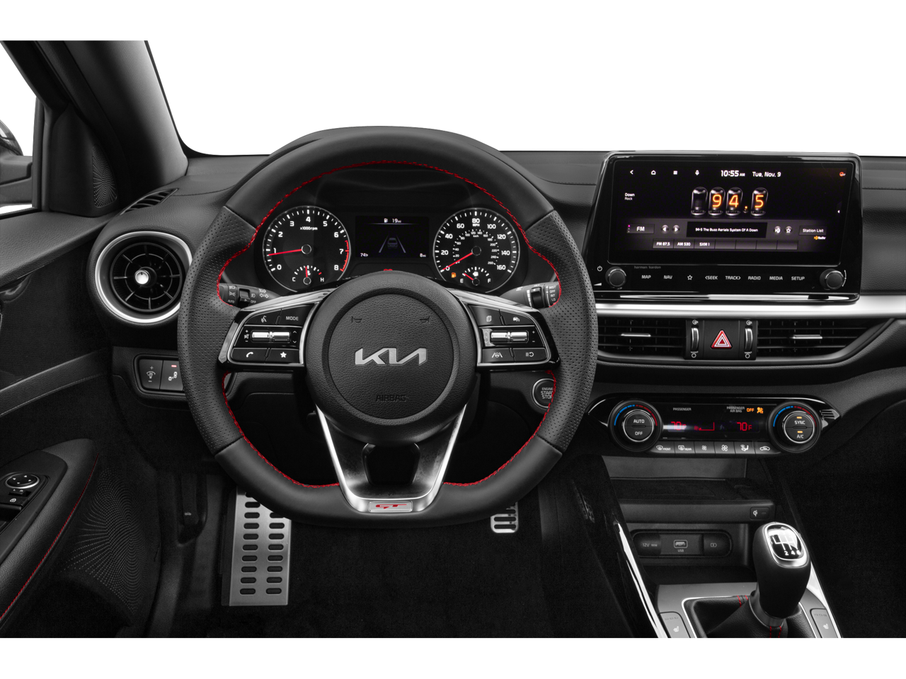 This 2024 Kia Forte GT-Line in Snow White Pearl comes with the following features: 2.0L I4 MPI CVT FWD ONE OWNER GT-Line Premium Package (harman/kardon® Premium Audio, LED Interior Lighting, Power Sunroof, and Wireless Charging), GT-Line Sport Premium Package (10-Way Power Driver's Seat, Heated & Ventilated Front Seats, Rear AC Vent, Rear USB Charger, and SynTex Seat Trim), 4-Wheel Disc Brakes, 6 Speakers, ABS brakes, Air Conditioning, Alloy wheels, AM/FM radio: SiriusXM, Apple CarPlay & Android Auto, Auto High-beam Headlights, Automatic temperature control, Brake assist, Bumpers: body-color, Cloth & SynTex Seat Trim, Delay-off headlights, Driver door bin, Driver vanity mirror, Dual front impact airbags, Dual front side impact airbags, Electronic Stability Control, Emergency communication system, Exterior Parking Camera Rear, Front anti-roll bar, Front Bucket Seats, Front Center Armrest, Front dual zone A/C, Front fog lights, Front reading lights, Front wheel independent suspension, Fully automatic headlights, Heated door mirrors, Illuminated entry, Leather Shift Knob, Leather steering wheel, Low tire pressure warning, Navigation System, Occupant sensing airbag, Outside temperature display, Overhead airbag, Overhead console, Panic alarm, Passenger door bin, Passenger vanity mirror, Power door mirrors, Power steering, Power windows, Radio data system, Radio: 10.25 Display Audio, Rear seat center armrest, Rear window defroster, Remote keyless entry, Security system, Speed control, Split folding rear seat, Spoiler, Sport steering wheel, Steering wheel mounted audio controls, Tachometer, Telescoping steering wheel, Tilt steering wheel, Traction control, Trip computer, Turn signal indicator mirrors, Variably intermittent wipers, and Wheels: 17 x 7.0 Alloy.