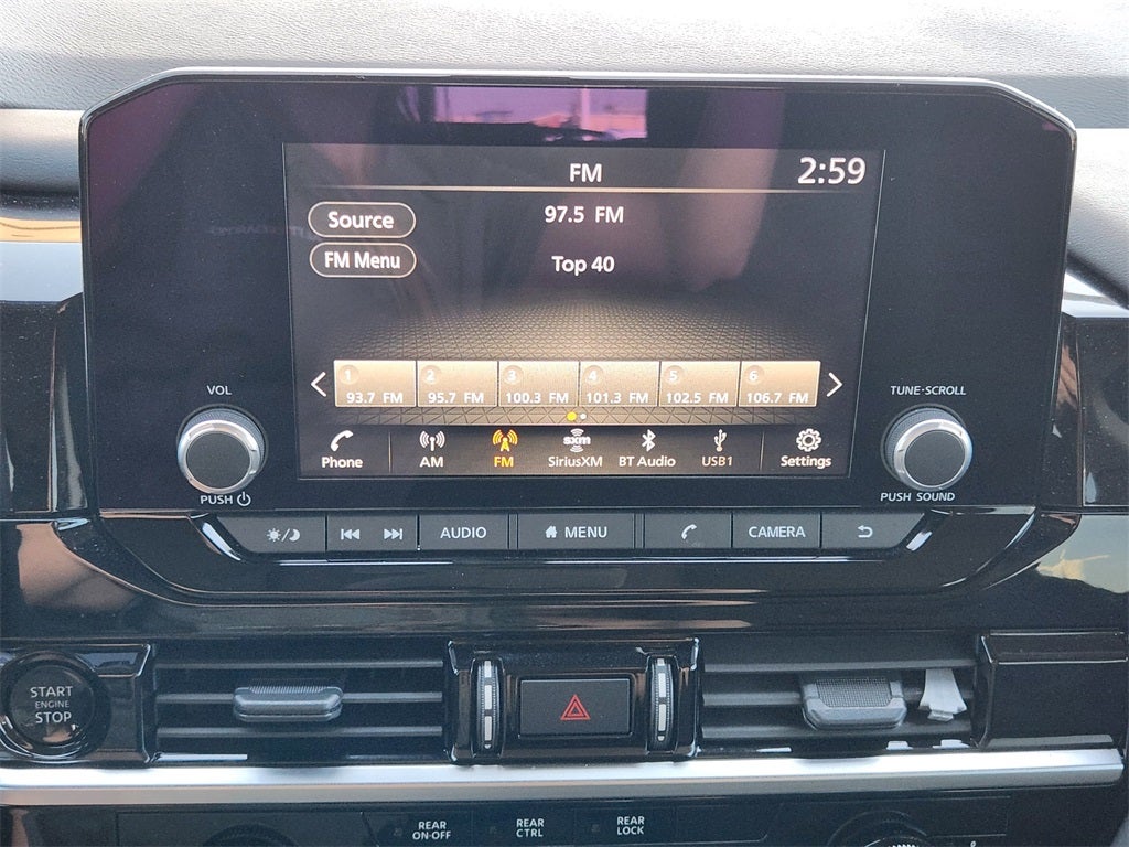 - Radio: AM/FM Audio System w/NissanConnect -inc: 6 speakers, Radio Data System (RDS), Apple CarPlay and Android Auto, 8" color display w/multi-touch control, SiriusXM satellite radio w/advanced audio features, 2 illuminated front USB connection ports (1 type A, 1 type C) for iPod interface and other compatible devices, Bluetooth® hands-free phone system and streaming audio, Speed-Sensitive Volume control (SSV), hands-free text messaging assistant and Siri Eyes-Free/Google Assistant voice recognition